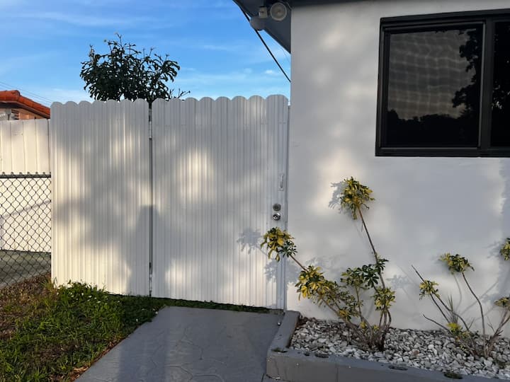 En una habitación doble privada cerca de Miami Clinics, tendrás acceso completo a un espacio completamente privado con tu propia entrada. Disfruta de la comodidad de un estacionamiento privado para 1 vehículo en el lugar. El acceso no tiene llave y te proporcionaremos un código, lo que eliminará la necesidad de una reunión en persona con el anfitrión. Te enviaremos todos los detalles del check-in antes de las 11:00 a. m. del día de tu llegada, lo que garantiza una entrada sin problemas y sin problemas.
