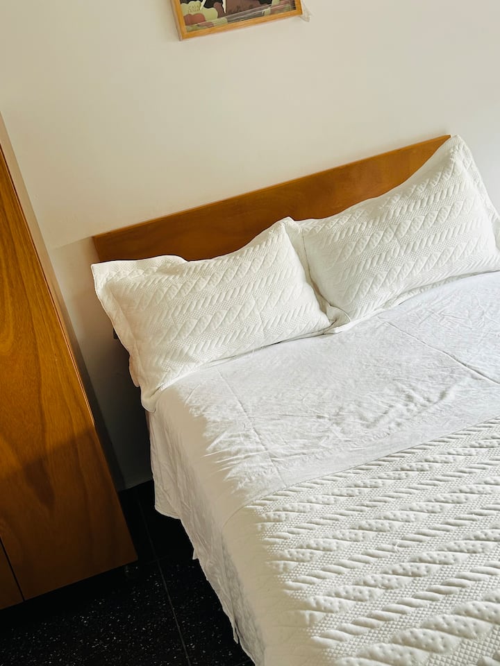 Una habitación solo para ti en un alojamiento, con acceso a áreas compartidas.
