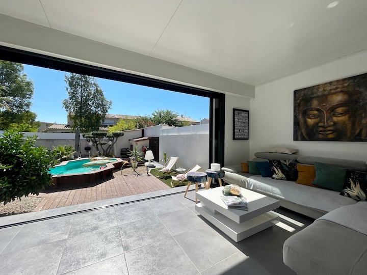 Hermosa villa, piscina, cerca del mar