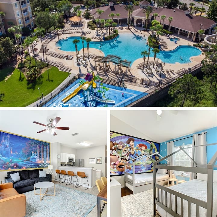 Te damos la bienvenida a Paradise Falls Vacations y a nuestras dos casas adosadas, el vuelo de Peter Pan y el castillo de la Cenicienta.“ Estos alojamientos son mágicos con toques clásicos y limpios de Disney en todas partes.