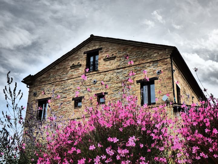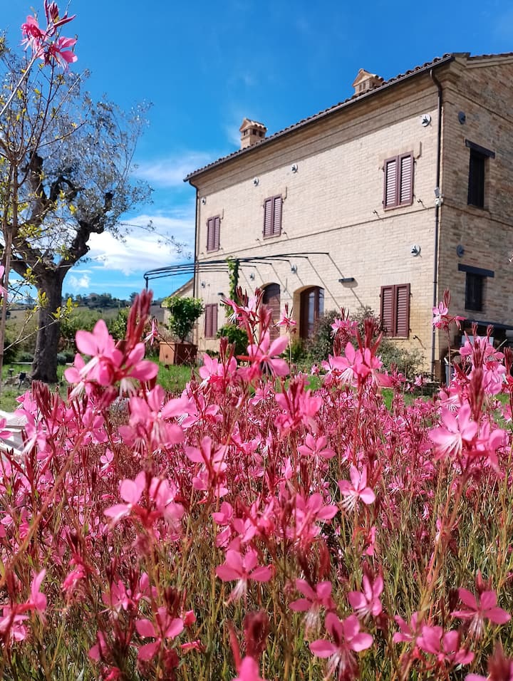 Hace unos quince años, durante unas vacaciones en las Marcas, nació el deseo de cambiar vidas; después de una larga experiencia laboral en el aeropuerto de Milán en el área de atención al cliente, nació un proyecto que nos llevó a encontrar un lugar que correspondiera a nuestros deseos, para poder vivir en armonía en la naturaleza una vida tranquila lejos del estrés y el bullicio.