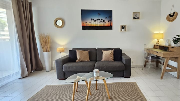 Alójese en este estudio tranquilo y cómodo de 37 m² con un balcón de 9 m², idealmente situado en Cannes.