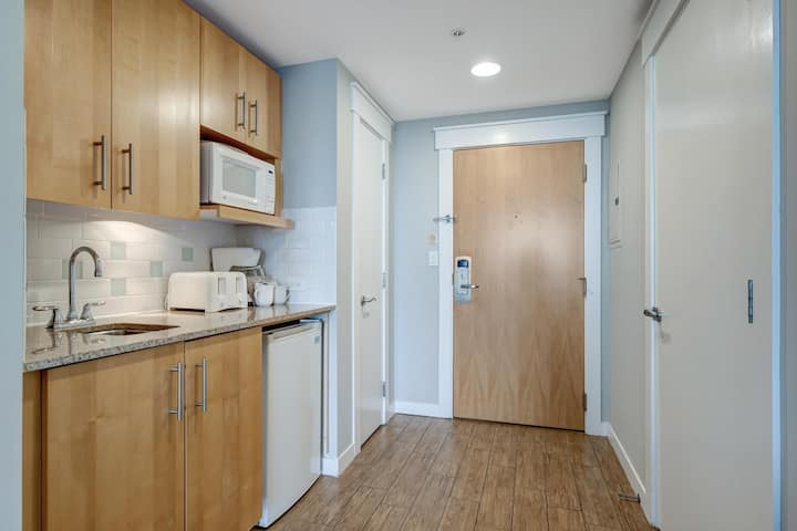 Refugio tranquilo de 1 dormitorio: cama tamaño king, cocina pequeña,