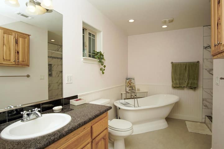Relájate con una ducha exterior y un sauna.