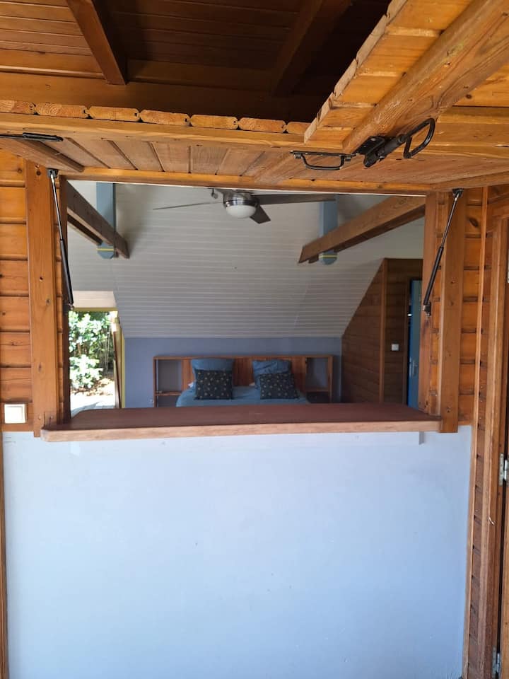 Bungalow con vistas al mar cerca del bosque.