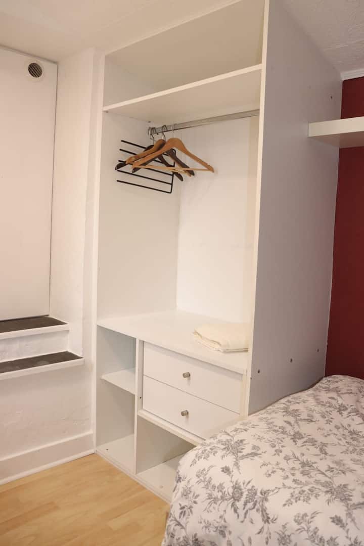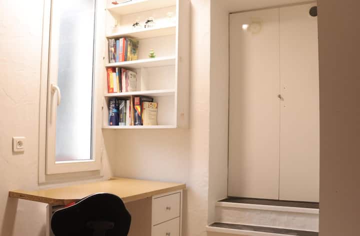 Una habitación solo para ti en un alojamiento, con acceso a áreas compartidas.