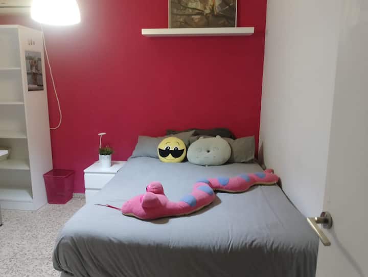 Una habitación solo para ti en un alojamiento, con acceso a áreas compartidas.
