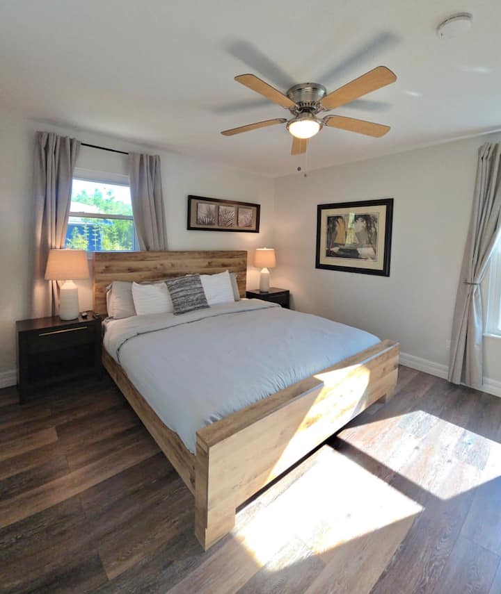 ¡Hola! Mi esposo y yo somos lugareños de Florida a los que les encanta hacer viajes por carretera y viajar siempre que podamos. Hace poco terminé mi licenciatura en Diseño de Interiores y actualmente trabajo en el diseño de interiores residenciales. Mi esposo, Tyler, es agente inmobiliario. ¡Disfrutamos del tiempo con nuestros dos perros, Hank y Daisy, y también tenemos un periquito y una serpiente! Espero que encuentres relajación en el espacio que hemos seleccionado para ti.