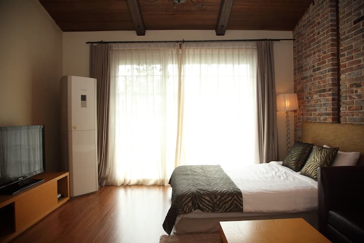 Prohibimos cocinar cerdo, pescado y cheonggukjang en la habitación para tener en cuenta a otros huéspedes debido al fuego y el olor, así que utiliza el lugar designado al aire libre y el área de barbacoa.