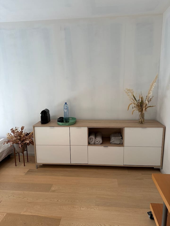 Una habitación solo para ti en un alojamiento, con acceso a áreas compartidas.