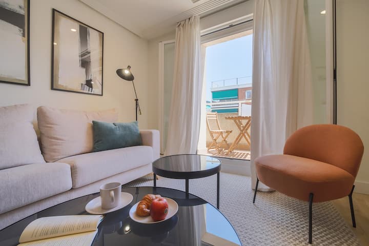 Pero lo que realmente distingue a esta propiedad es su espectacular terraza. Imagina disfrutar del clima soleado de Madrid mientras te relajas al aire libre. Ya sea disfrutando de un desayuno tranquilo al amanecer o brindando con amigos bajo las estrellas, esta terraza es el lugar ideal para crear recuerdos inolvidables durante tu estancia en la ciudad.