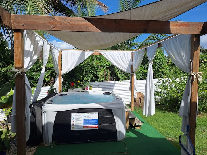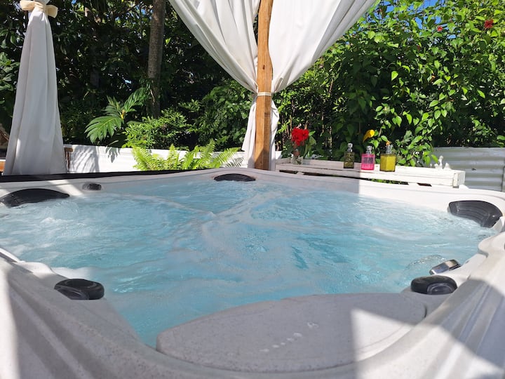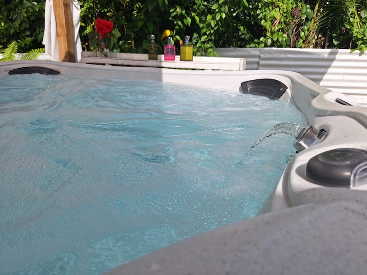 Relájate con una ducha exterior y un jacuzzi.