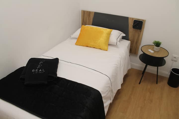 Habitación individual con baño privado.