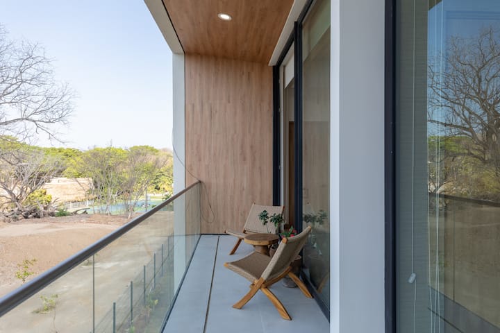 Embárcate en una escapada tropical inigualable en el condominio recién establecido ubicado dentro de Become Nosara. Presentamos nuestro exquisito apartamento de 2 dormitorios y 2 baños con una cautivadora vista a la selva, donde el lujo se integra a la perfección con los verdes paisajes de Costa Rica.