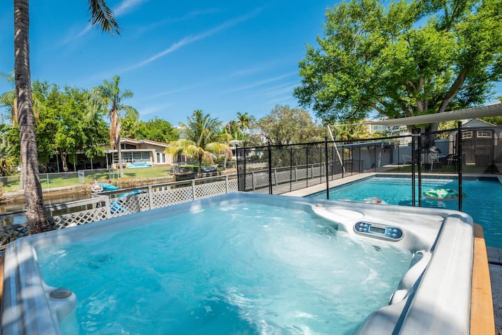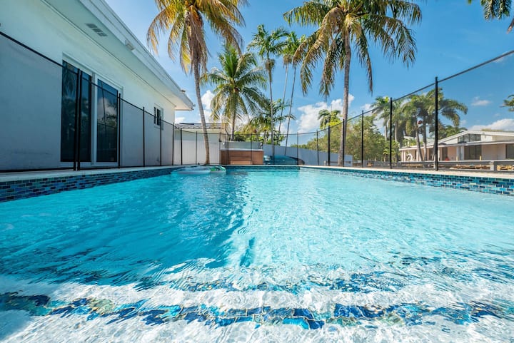 Ubicada en un hermoso paraíso, esta casa cuenta con una nueva y resplandeciente piscina CLIMATIZADA, una bañera de hidromasaje, una gran terraza y una elegante sala de estar que es perfecta para darte un chapuzón o simplemente tomar el sol. Enchanted Lake, un encantador barrio de Miami, ofrece actividades al aire libre como pasear, correr, kayak y surf de remo. Su ubicación céntrica ofrece fácil acceso a tiendas, restaurantes, entretenimiento, parques y parques infantiles.