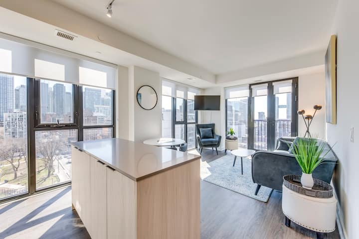 Experimenta la vida contemporánea en nuestro lujoso apartamento de 3 dormitorios y 2 baños ubicado en el vibrante corazón del vecindario King West de Toronto, a medio camino entre las bulliciosas calles de King y Queen. Situada en el piso 10 de un rascacielos moderno, esta unidad de 1000 pies cuadrados combina la funcionalidad con la comodidad de alta gama.
