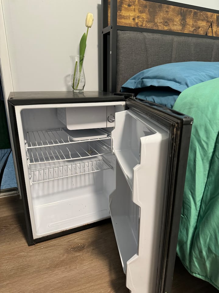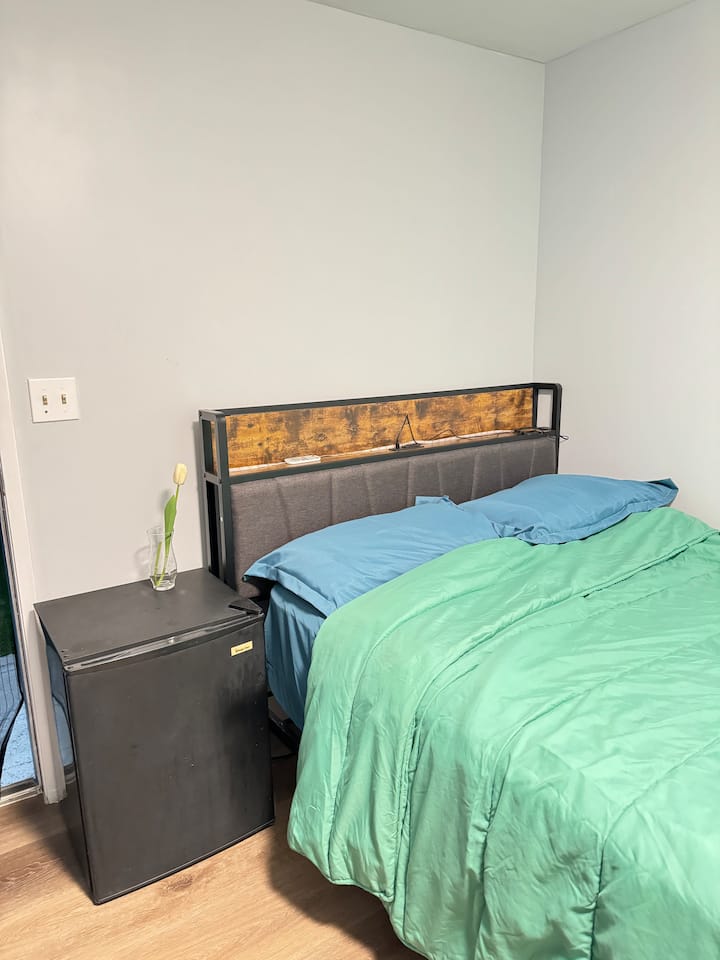 Acceso independiente a la habitación con cama doble del patio trasero.
