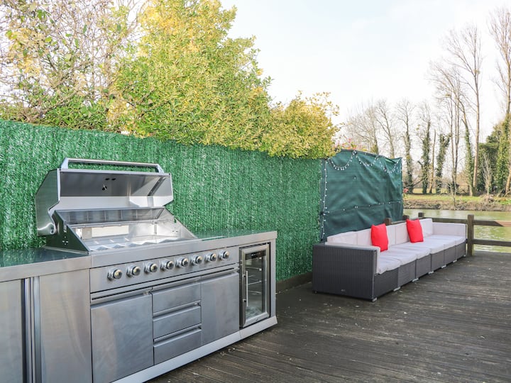 Coventina consta de una sala de estar de planta abierta y un servicio público con AGA de gas y electricidad con horno y placa de gas, microondas/horno combinado, nevera/congelador, lavadora/secadora, lavavajillas, cafetera, comedor y TV. Los dormitorios constan de una familia tamaño king con balcón, un tamaño king, dos camas tamaño queen en la planta baja, una sola familia de planta baja con dos camas dobles, con un baño y un baño en la planta baja. En el exterior hay un jardín trasero con césped, terraza, jacuzzi, barbacoa, muebles. No podemos garantizar que la bañera de hidromasaje esté lista a la llegada sin previo aviso suficiente (una semana). Las instrucciones de uso estarán en el paquete de información de la propiedad. Aterrizaje privado en el río Támesis. Dos perros bien educados son bienvenidos. Lo sentimos, no se puede fumar ni despedidas de soltero, gallina o fiestas similares. Tienda y pub a 0,8 millas. Nota: La entrada tiene un portón eléctrico. Nota: Tres escalones hasta la puerta principal y pequeños escalones en toda la casa. Nota: La propiedad da al río Támesis, los niños y las mascotas deben estar bajo supervisión en todo momento mientras estén afuera. Esta propiedad se puede reservar junto con la propiedad 1151367 (Thames Retreat) para 2 personas adicionales. Nota: 3 perros bien educados son bienvenidos. Todas las mascotas deben ser declaradas con antelación.