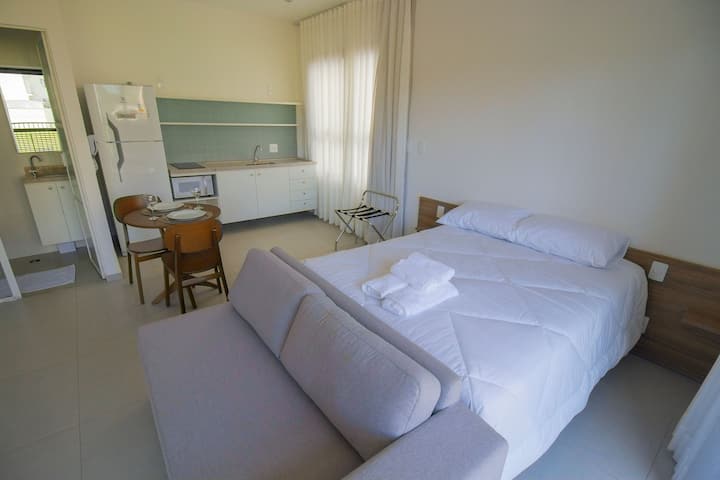 1 cama matrimonial, 1 sofá cama