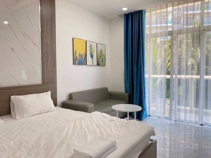 Con una superficie de 45 m2, el apartamento tiene un balcón separado con un elegante espacio interior, lo que hace que el ambiente general sea relajante y romántico, especialmente adecuado para parejas que desean romance en Phan Thiet Bay. El diseño de lujo con vistas al jardín es donde puedes estar cerca de la naturaleza sin reflejos del sol