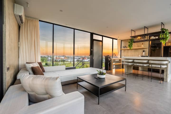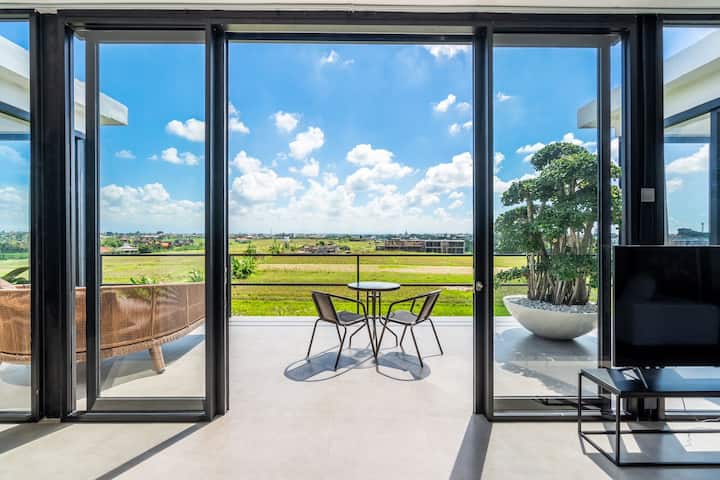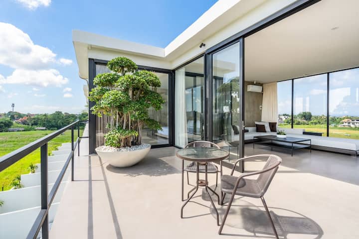 Moderno ático con vistas a un arrozal