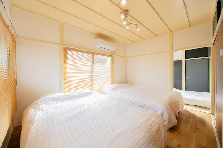 * Esta es una casa de 2 pisos con 2 camas dobles y 1 juego de futones de tamaño doble.Puede alojar hasta 6 personas calculando 3 juegos de ropa de cama doble para un máximo de 2 personas, pero el número correcto de personas para alojarse cómodamente es de aproximadamente 2-4.Si estás considerando alojarte en un grupo grande, ten en cuenta que puede ser difícil relajarte debido al número y la disposición de los muebles y la ropa de cama.