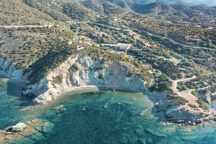Inmersa en el matorral mediterráneo y en una zona aislada con acceso limitado a Internet, la residencia garantiza una experiencia en contacto cercano con la naturaleza y el alejamiento de la vida cotidiana.