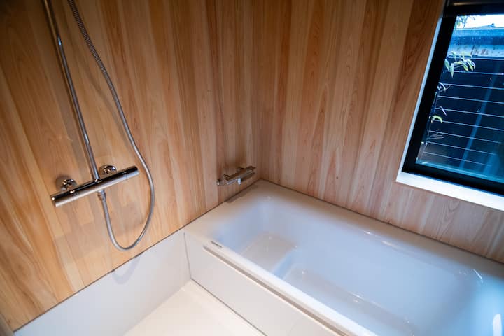El exterior de la casa está construido en un estilo puramente japonés. La entrada pavimentada con piedra Shakudani, y los pilares y vigas que quedan del período Edo (1603-1868) se utilizan, lo que permite