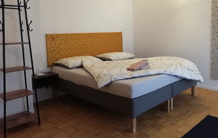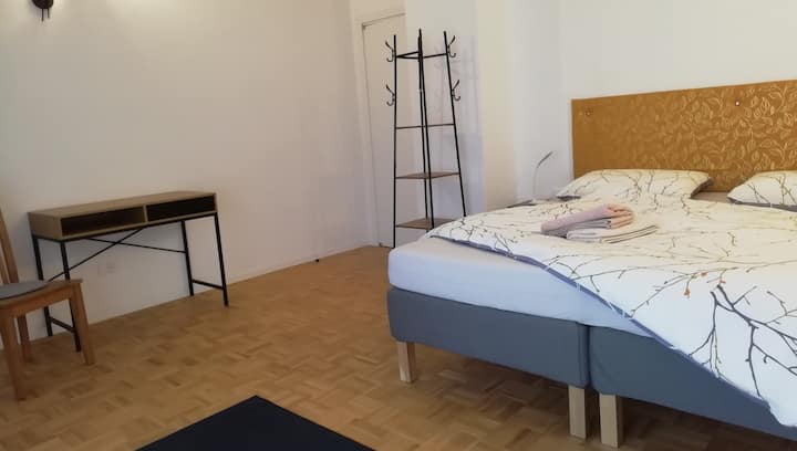 Una habitación solo para ti en un alojamiento, con acceso a áreas compartidas.