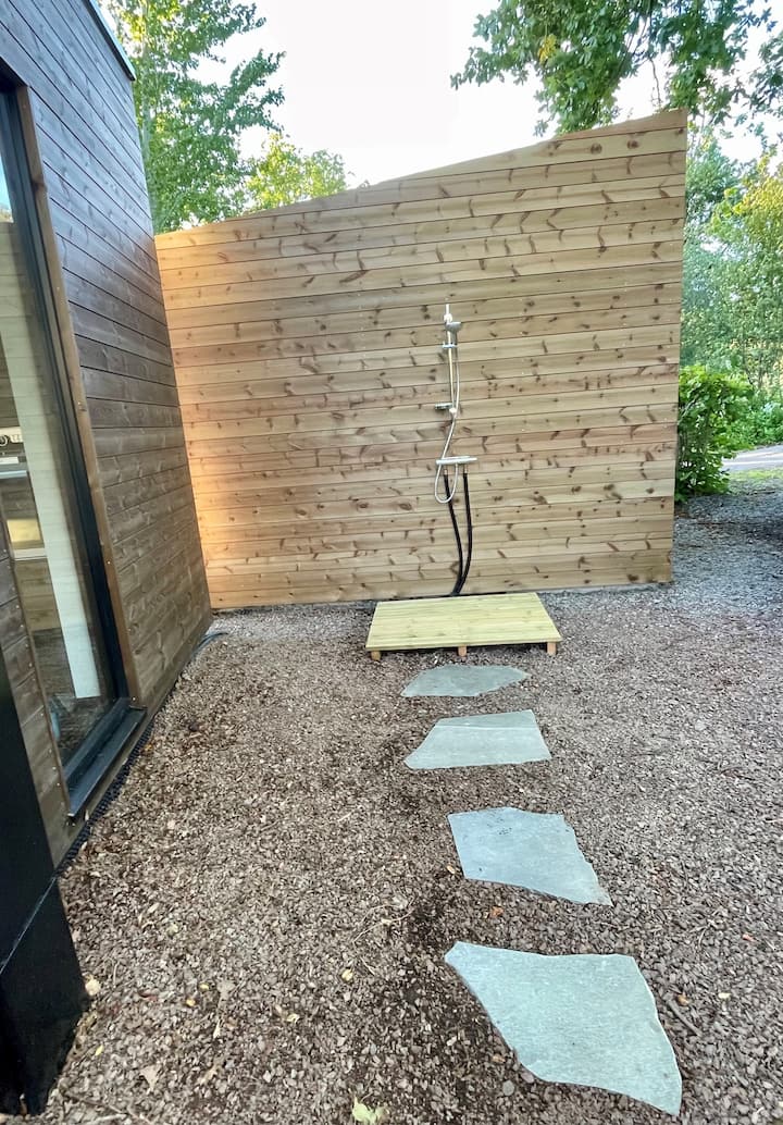 Relájate con una ducha exterior y un jacuzzi.