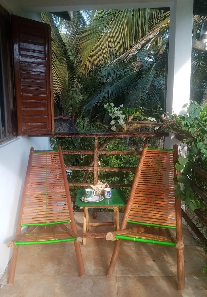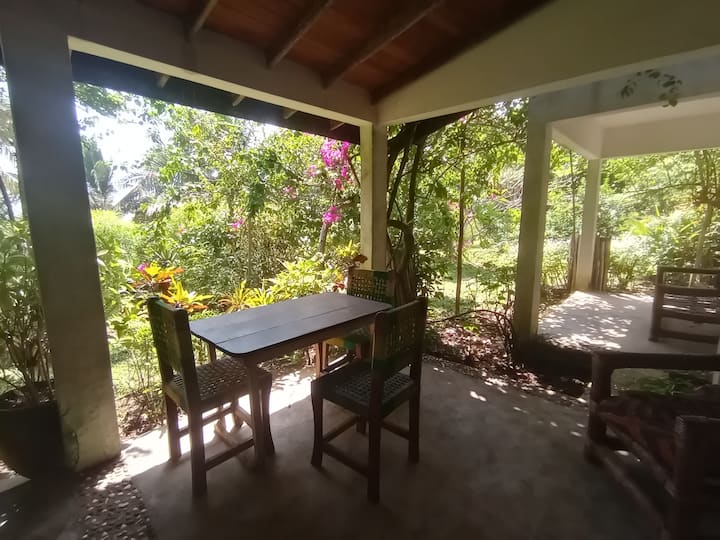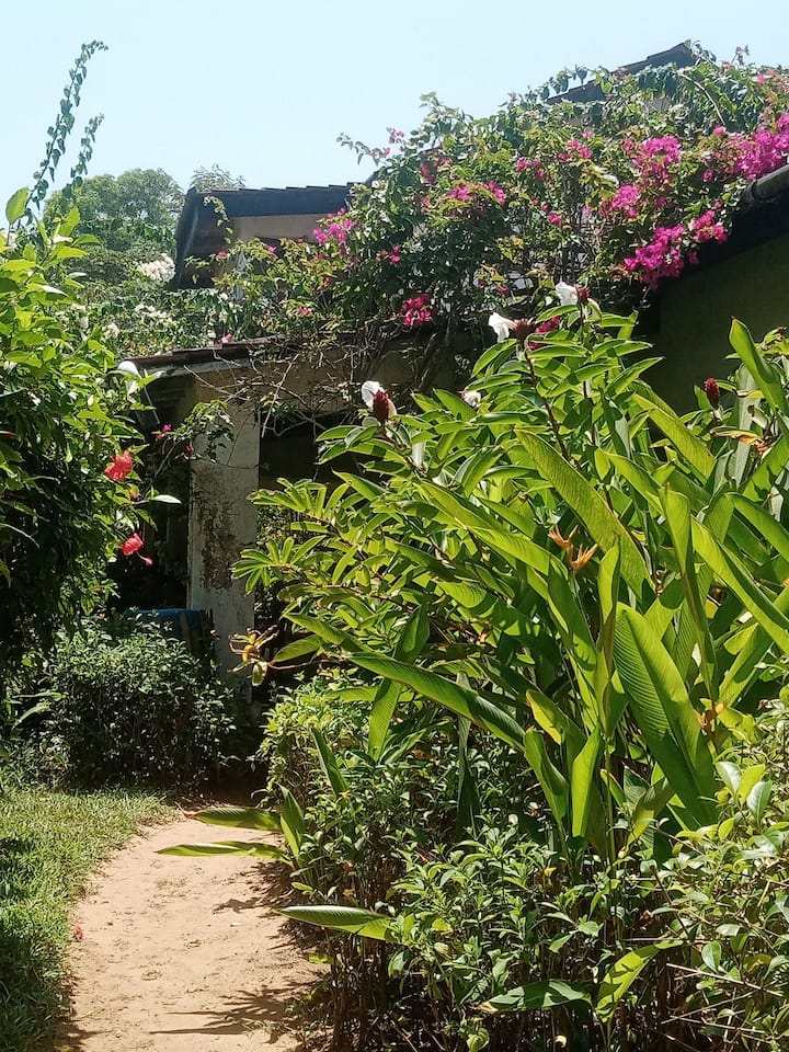 Nuestra casa aislada ecológica se encuentra en hermosos jardines de flores entre cocoteros a orillas del océano. Ofrece una oportunidad para cualquier persona que disfrute de la belleza de la naturaleza para desconectarse y aprovechar los alrededores.