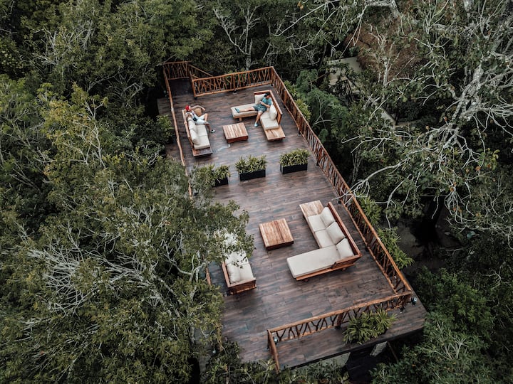 Todo está rodeado de selva profunda, lo que lo convierte en un espacio mágico para conectarse contigo mismo y con la naturaleza, y un paisaje increíble para tu evento.