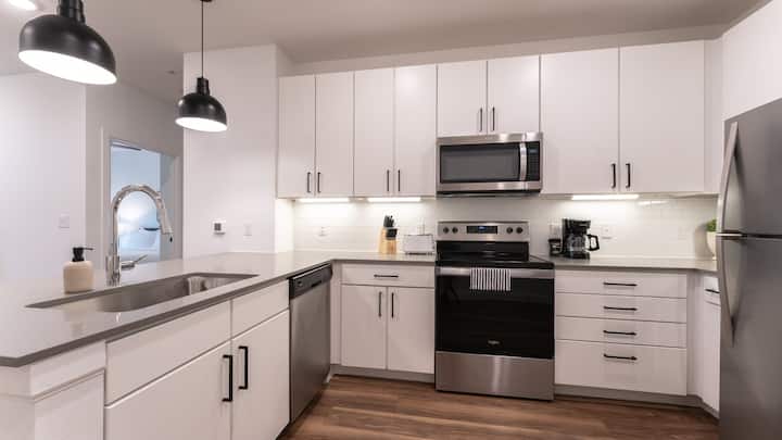 Moderna suite de 1 dormitorio con balcón cerca de Weaver