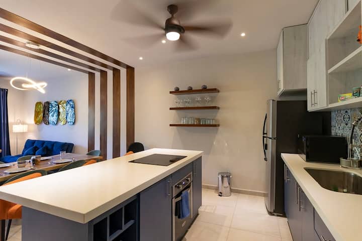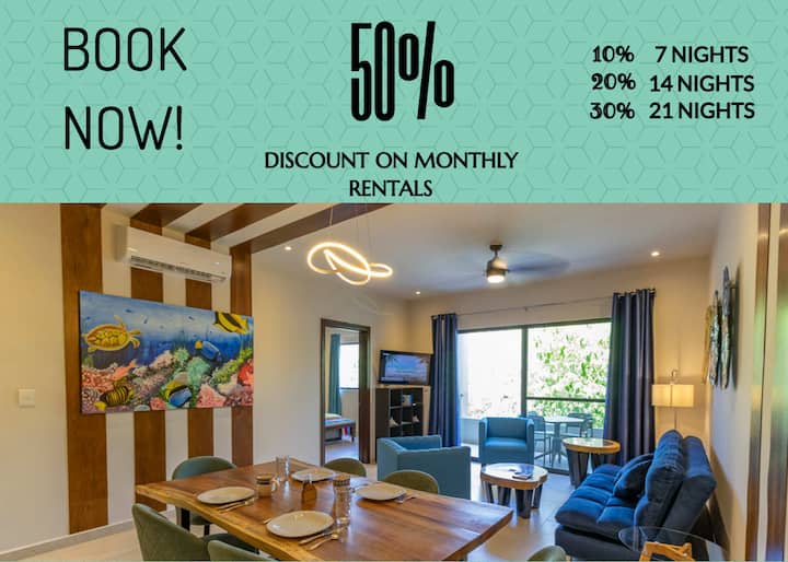 Este hermoso y encantador apartamento de 2 dormitorios decorado se encuentra en el área de Selvanova, cerca de Plaza Américas en la zona local de Playa del Carmen, a solo 10 minutos del centro de la ciudad y de la playa, es el lugar perfecto para pasar unas agradables vacaciones en Playa del Carmen. Perfecto para familias. Es una comunidad privada con todo lo que necesitas.