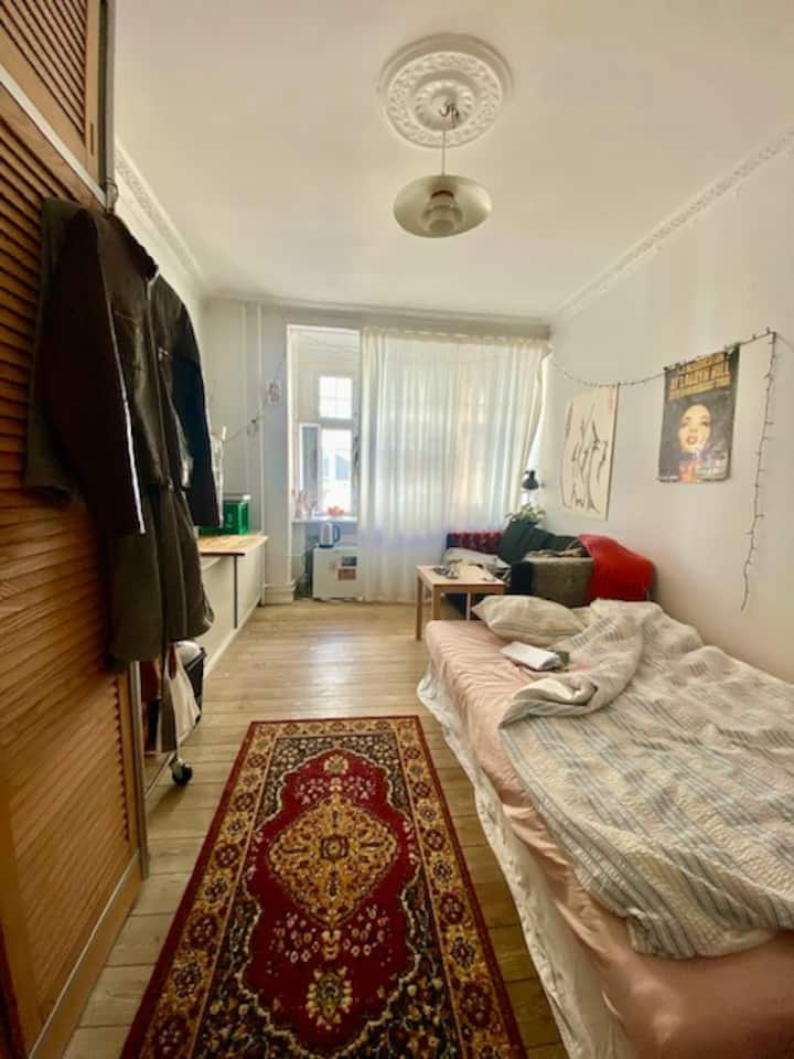 Una habitación solo para ti en un alojamiento, con acceso a áreas compartidas.