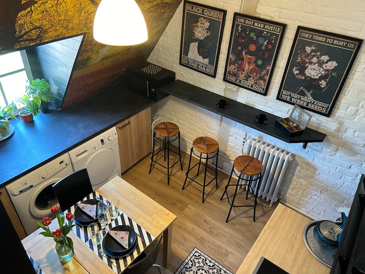 Está ubicado en el segundo piso de una casa segura de 1927 llena de encanto (acceso a través de escaleras).