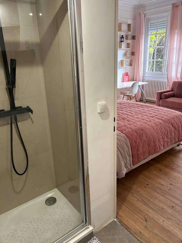 Habitación luminosa, espaciosa y cómoda de 25 m2 situada en el centro de Roubaix y a dos minutos del tranvía y el metro. Alojamiento ideal para viajes familiares y de negocios en el metropole de Lille.