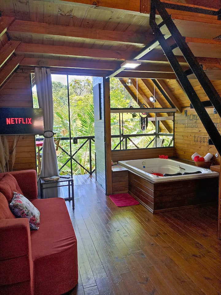 Cabaña romántica en la selva • Cascada + Desayuno gratis
