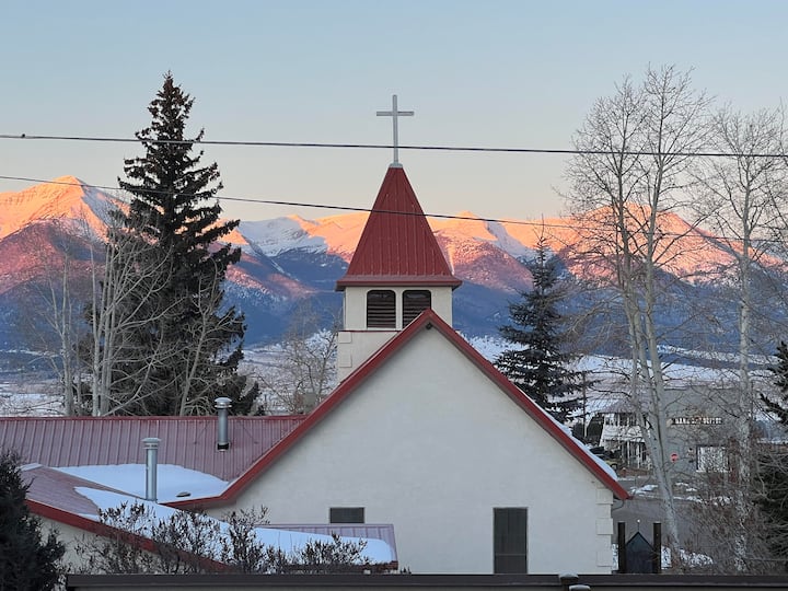 Disfruta de esta encantadora ciudad de montaña de Colorado a pocos pasos del pintoresco centro de la ciudad y Bluff con increíbles vistas de la Sangre de Cristos. Este es un anuncio de casa compartida; el propietario vive en la propiedad. La suite de invitados incluye un dormitorio con cama tamaño queen, segundo dormitorio con litera individual, sala de estar con chimenea de gas y TV inteligente, minicocina (microondas, mininevera, enfriador de agua, Keurig y mesa de comedor), baño con ducha y bañera, y acceso al patio, dependiendo del clima.