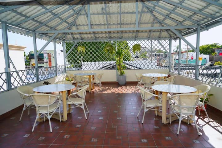Central hotel a 2 calles de Malecón y desayuno