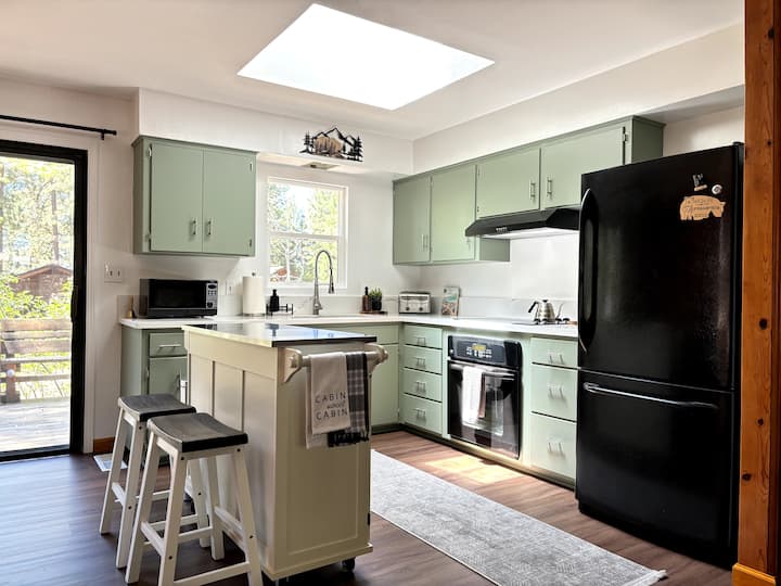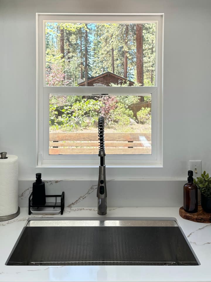 Meses de verano: como la mayoría de las cabañas en Tahoe, no hay aire acondicionado en esta cabaña. Hay ventiladores de techo en cada dormitorio y en la sala de estar, y se proporciona un ventilador portátil para tu comodidad.