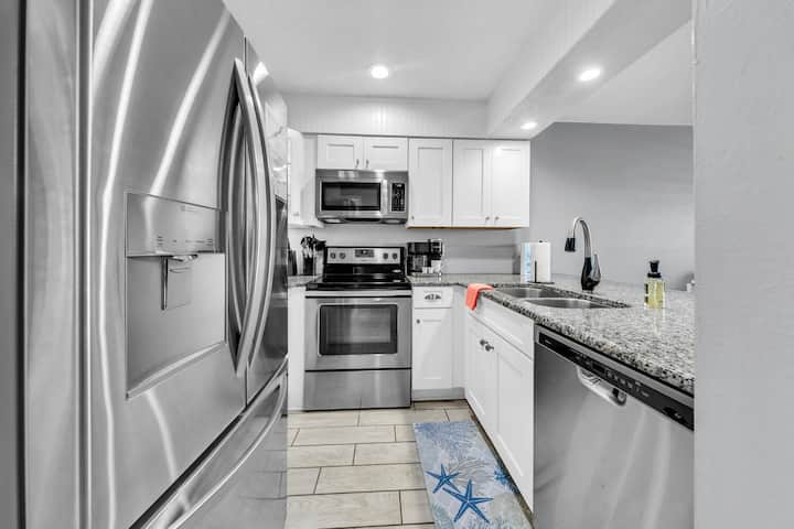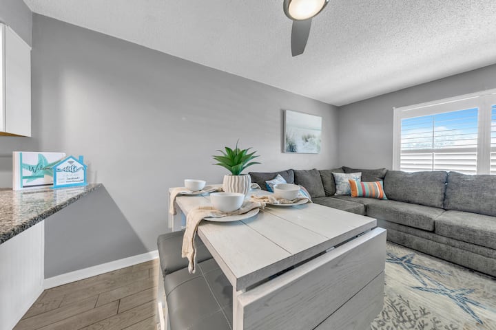 ¡Este condominio en planta baja súper lindo seguramente será tu nueva zona de playa favorita en Destin! Este condominio recién comprado y amueblado es tan fresco y lleno de muchas grandes mejoras. Ubicado a lo largo de Scenic 98, nuestro condominio está a poca distancia a pie de Pompano Joes y del enorme acceso a la playa del parque estatal. Nuestra ubicación está a poca distancia en coche de Destin Commons, Silver Sands Outlets y otras opciones populares de entretenimiento y restaurantes como Crab Trap, Surf Hut y Camille. El acceso a la playa está justo al otro lado de la calle, ¡puedes estar allí en minutos! El pintoresco 98 tiene un sendero para caminar/andar en bicicleta que se extiende de extremo a extremo y es el lugar perfecto para pasear por las pintorescas áreas de playa.