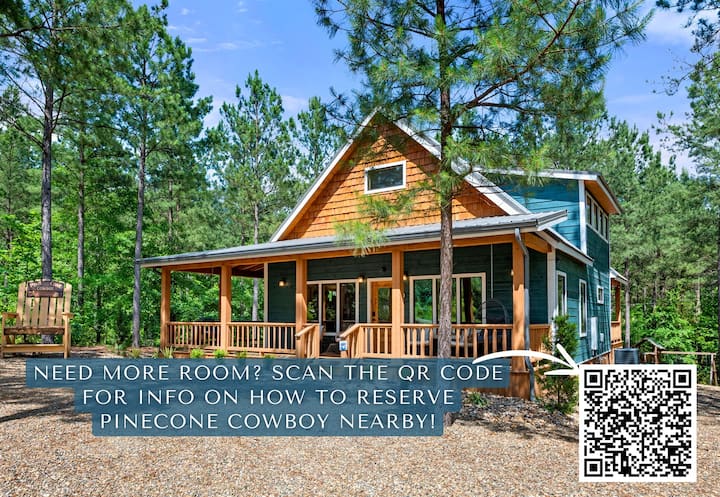 Algunas escapadas son mejores en compañía, y “It Takes a Village” está hecho para eso. Esta propiedad única cuenta con tres encantadoras cabañas ubicadas una al lado de la otra en los pinos de Broken Bow, OK, que ofrecen el equilibrio perfecto entre conexión y comodidad. Ideal para vacaciones multifamiliares, grupos de amigos o parejas que viajan juntos, cada cabaña tiene su propio espacio, pero todos comparten el mismo ambiente tranquilo. Disfruta de techos altos, acogedoras chimeneas de piedra, cocinas totalmente equipadas y acogedoras salas de estar. En el exterior, cada cabaña tiene un amplio porche trasero con cómodos asientos y una chimenea, además de acceso a bañeras de hidromasaje privadas y piscinas climatizadas/refrigeradas (se aplican tarifas de calefacción) para la máxima relajación.