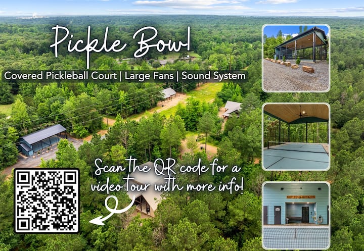 Lo que diferencia a It Takes a Village es nuestra única cancha de pickleball cubierta (Pickle Bow). Tanto si eres un jugador experimentado como si eres nuevo en el juego, nuestra cancha ofrece diversión infinita para todas las edades. Reúne a tu familia y amigos para una estancia inolvidable llena de relajación, aventura y competencia amistosa en It Takes a Village. Como huésped de las cabañas, tendrás acceso a la nueva cancha de pickleball de lujo, Pickle Bow. Los huéspedes de la cabaña reciben 2 horas de cortesía por día. Se puede comprar tiempo adicional en la cancha por $ 60 por sesión de 2 horas. Los alojamientos en canchas incluyen acceso gratuito a paletas y pelotas de pickleball. Recibirás un correo electrónico de Treeline Vacation Rentals con instrucciones y un enlace para reservar las fechas y horas de la corte que prefieras en Pickle Bow.