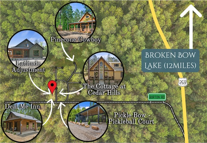 It Takes a Village es un trío de cabañas acogedoras en Broken Bow, OK, perfectas para familias, amigos o parejas que viajan juntos. Cada cabaña cuenta con cómodos espacios de estar, cocinas completas, chimeneas al aire libre, jacuzzis y piscinas privadas climatizadas (se aplican tarifas de calefacción). Con una combinación de habitaciones con camas tamaño king, habitaciones con literas, áreas de juego y comodidades modernas, este refugio ofrece conexión y privacidad. A pocos minutos de Broken Bow Lake y Hochatown, es ideal para tu próxima escapada en grupo.