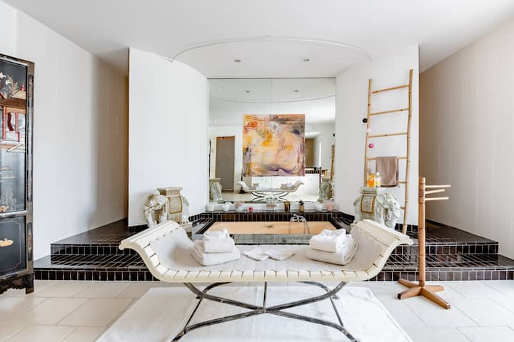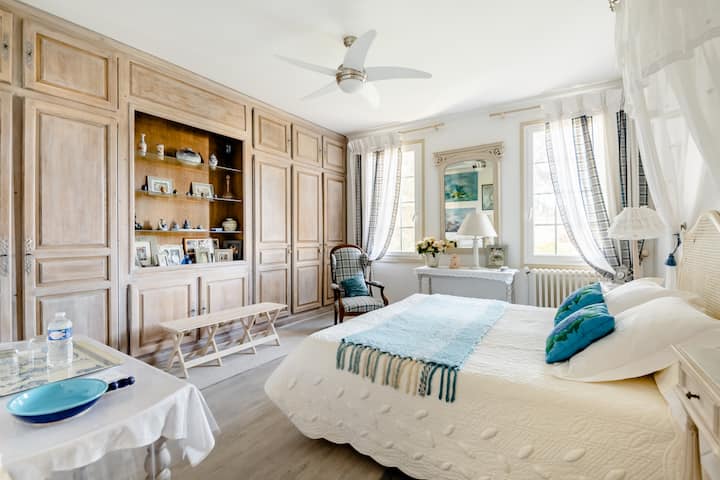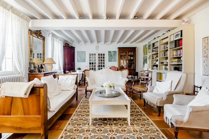 Antiguo ejecutivo comercial, tomé la casa familiar renovada por mis padres durante su carrera en el extranjero y decorada con talento por mi madre apasionada por la pintura y el arte.