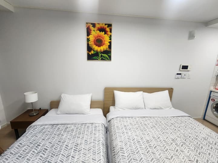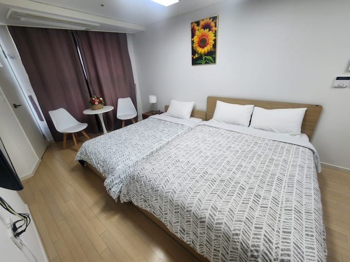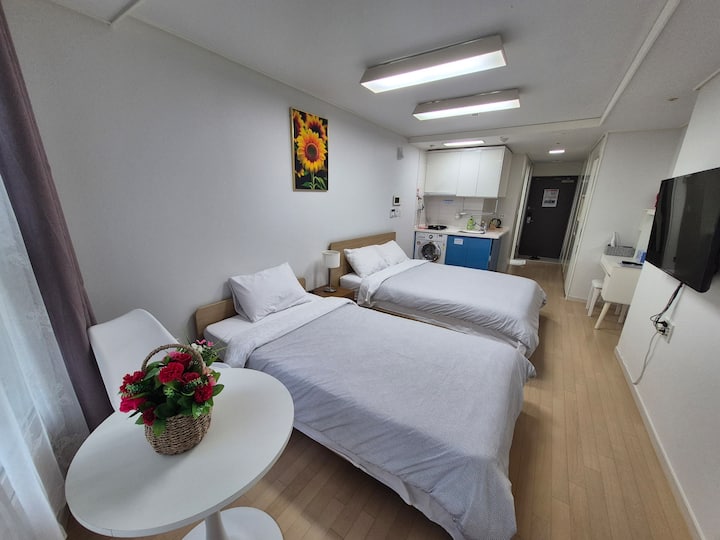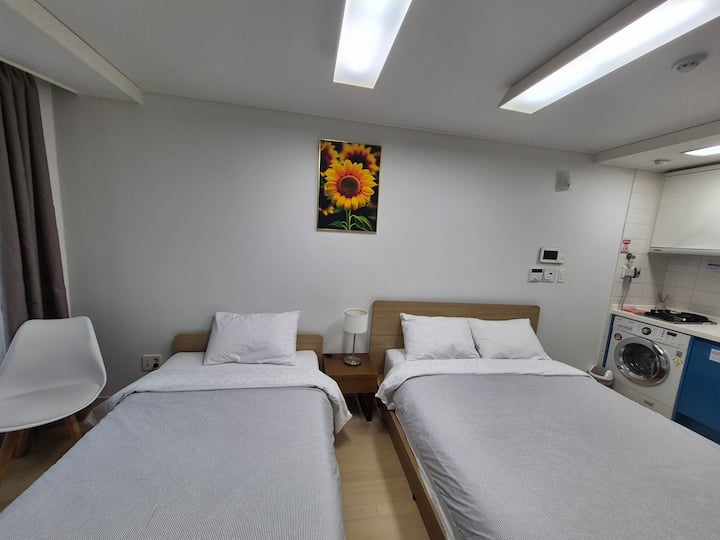 (1/84) 1 minuto a Haeundae/al lado de LCT/alojamiento acogedor/opciones completas/Netflix/estacionamiento gratuito/almacenamiento de equipaje/estancias largas bienvenidas