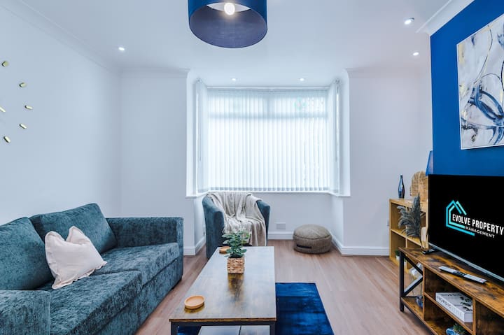 ¡Te damos la bienvenida a nuestra elegante y espaciosa casa familiar de 2 dormitorios en Manchester! Ideal para familias, amigos o viajeros de negocios, este moderno refugio ofrece un amplio espacio para un máximo de 6 huéspedes, con todos los servicios para una estadía cómoda.