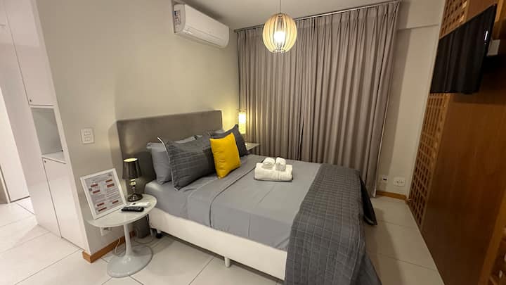 Bienvenido a "Estilo y Confort en London Residencial Design en Icaraí", un refugio chic y elegante en el corazón de Icaraí, ideal para una estancia inolvidable en Niterói. Este loft ha sido diseñado para ofrecer el máximo confort y conveniencia, alojando hasta 4 personas con refinamiento y practicidad.