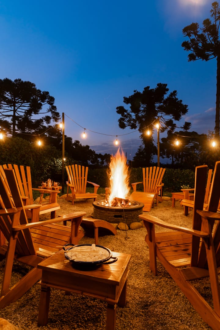 Fogata, jardín, vista, diseño y spa ofuro/sauna.